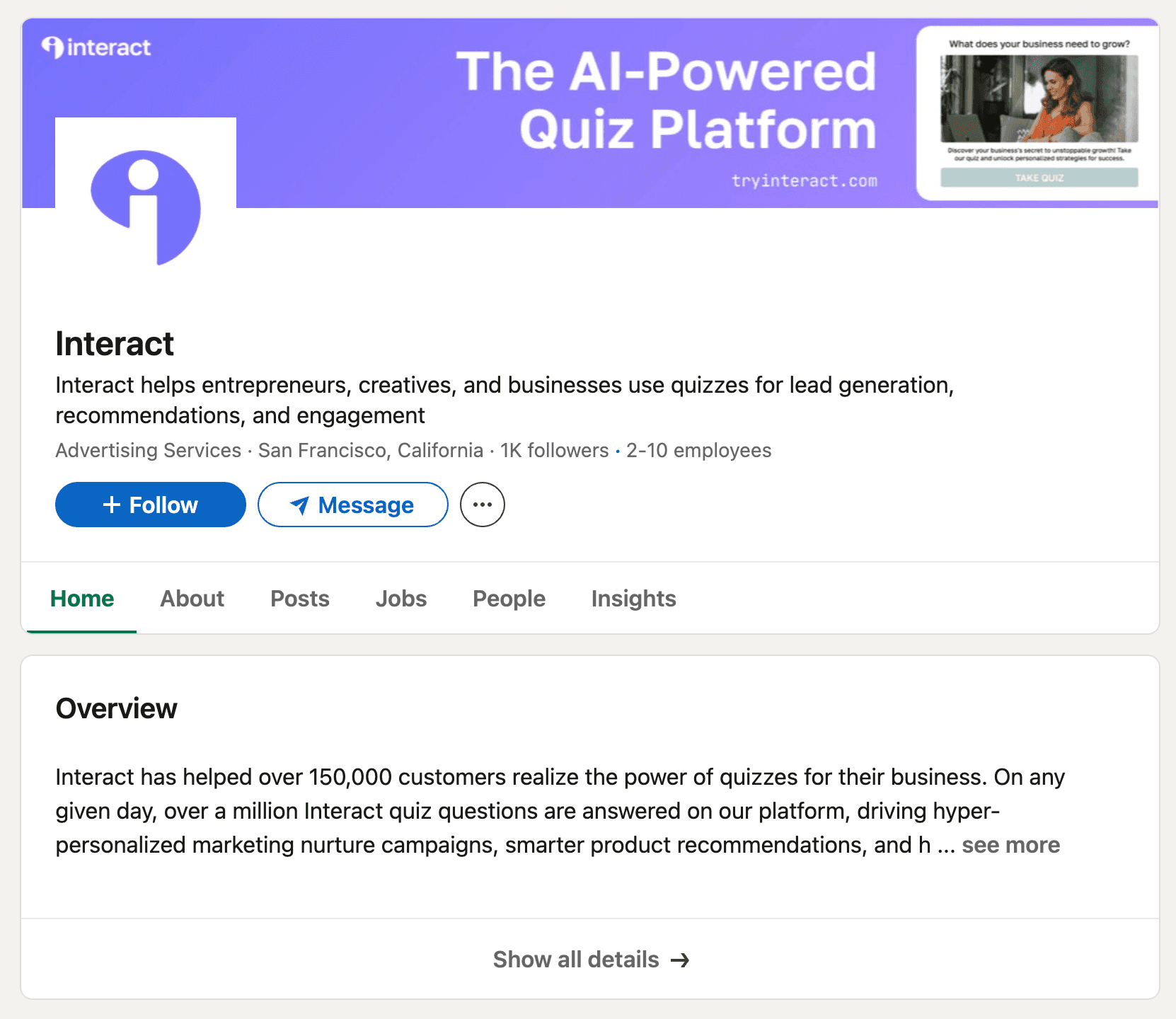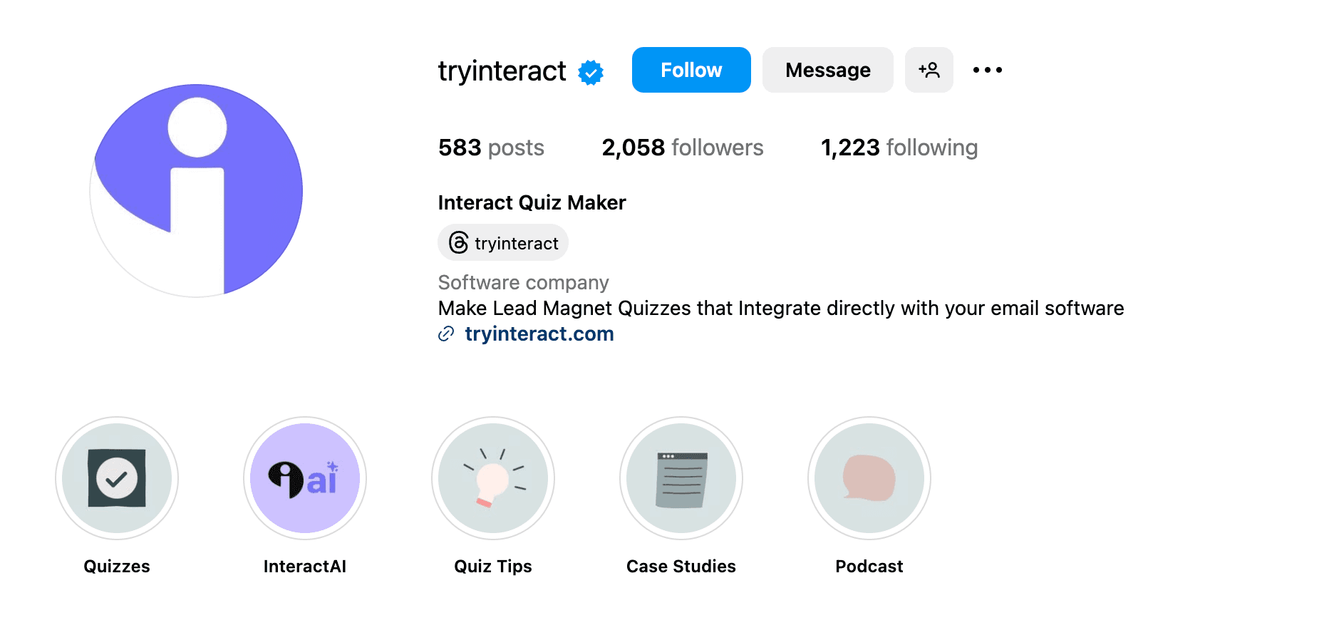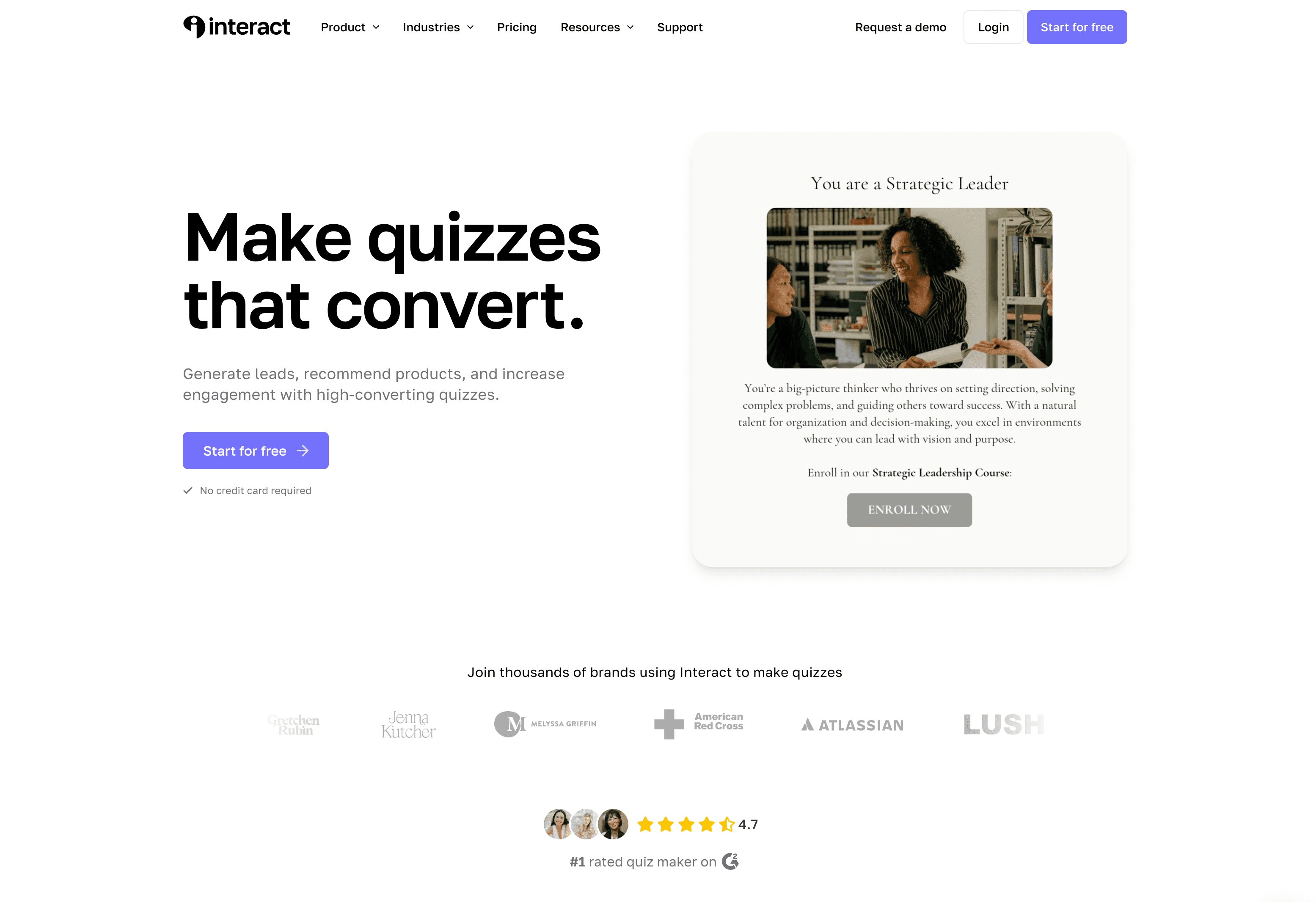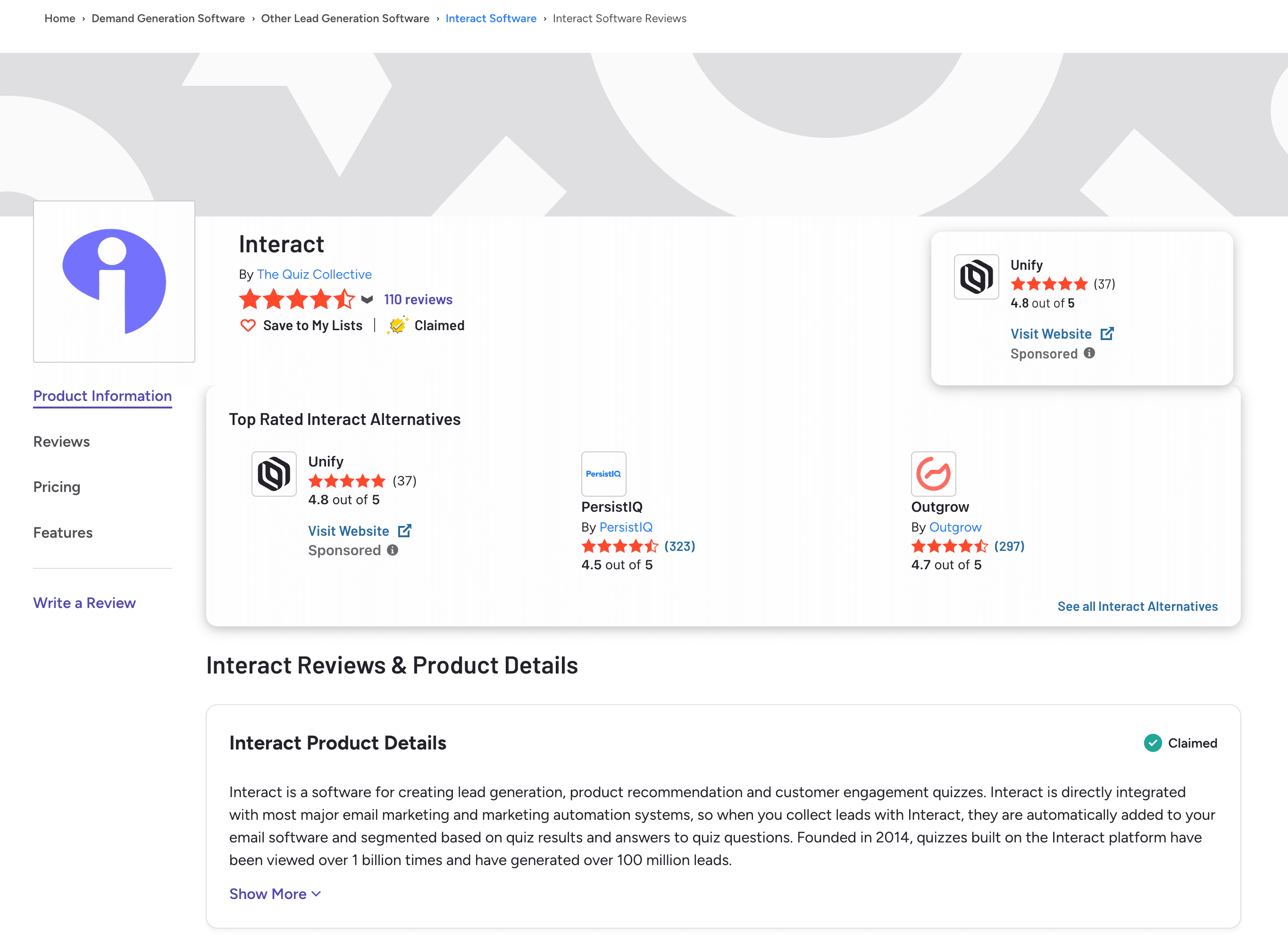 Everywhere Interact appears online, the category 'lead generation' often sit right next to 'quiz'.